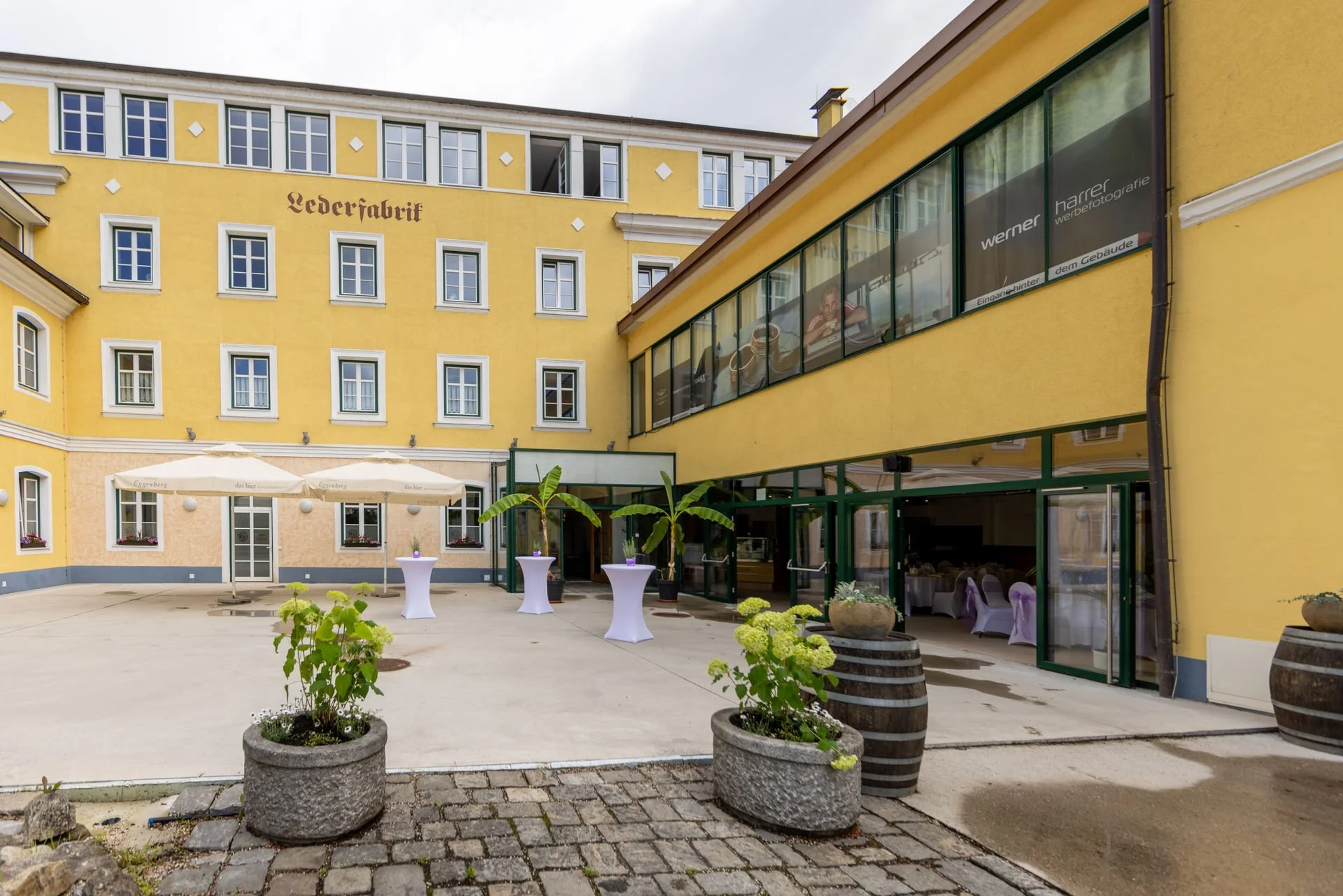 Die Lederfabrik liegt am grünen Stadtrand von Linz. Dementsprechend gibt es auch Outdoor-Bereiche und einen besonderen Kraftplatz.